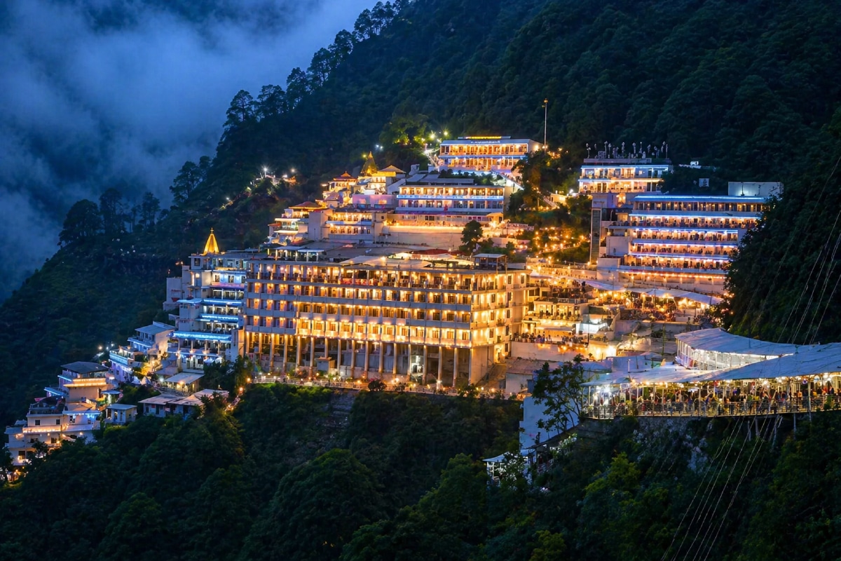 Vaishno Devi Temple Katra 45 km + trek 1.5–2 hrs + trek ₹2,000 – ₹3,000 March–October, Navratri